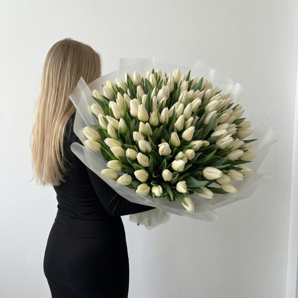 Na zdjęciu prezentowany jest bukiet z 51 i 101 tulipanów.