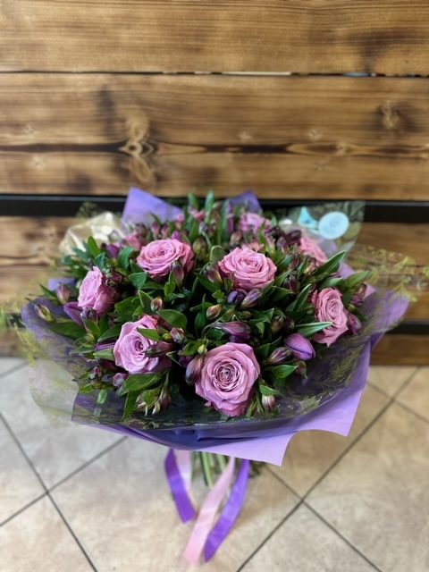 Delikatny, wyjątkowy, nieoczywisty – taki właśnie jest bukiet „Fioletowe Marzenie”. To połączenie zmysłowych róż w odcieniu fioletu i subtelnych alstromerii, które tworzą kwiatową kompozycję pełną harmonii, elegancji i lekkości.