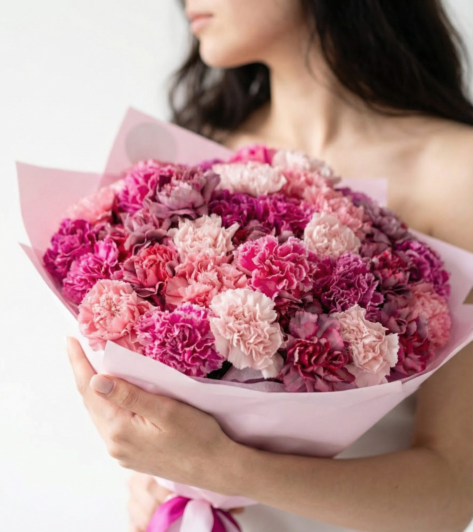 Kompozycja goździków została starannie ułożona i zapakowana w elegancki, różowy papier dekoracyjny, który podkreśla ich kolor i nadaje całości wysublimowanego charakteru. Dzięki pastelowej kolorystyce bukiet wpisuje się w każdy gust – zarówno tradycyjny, jak i nowoczesny – i pasuje do każdej okazji.