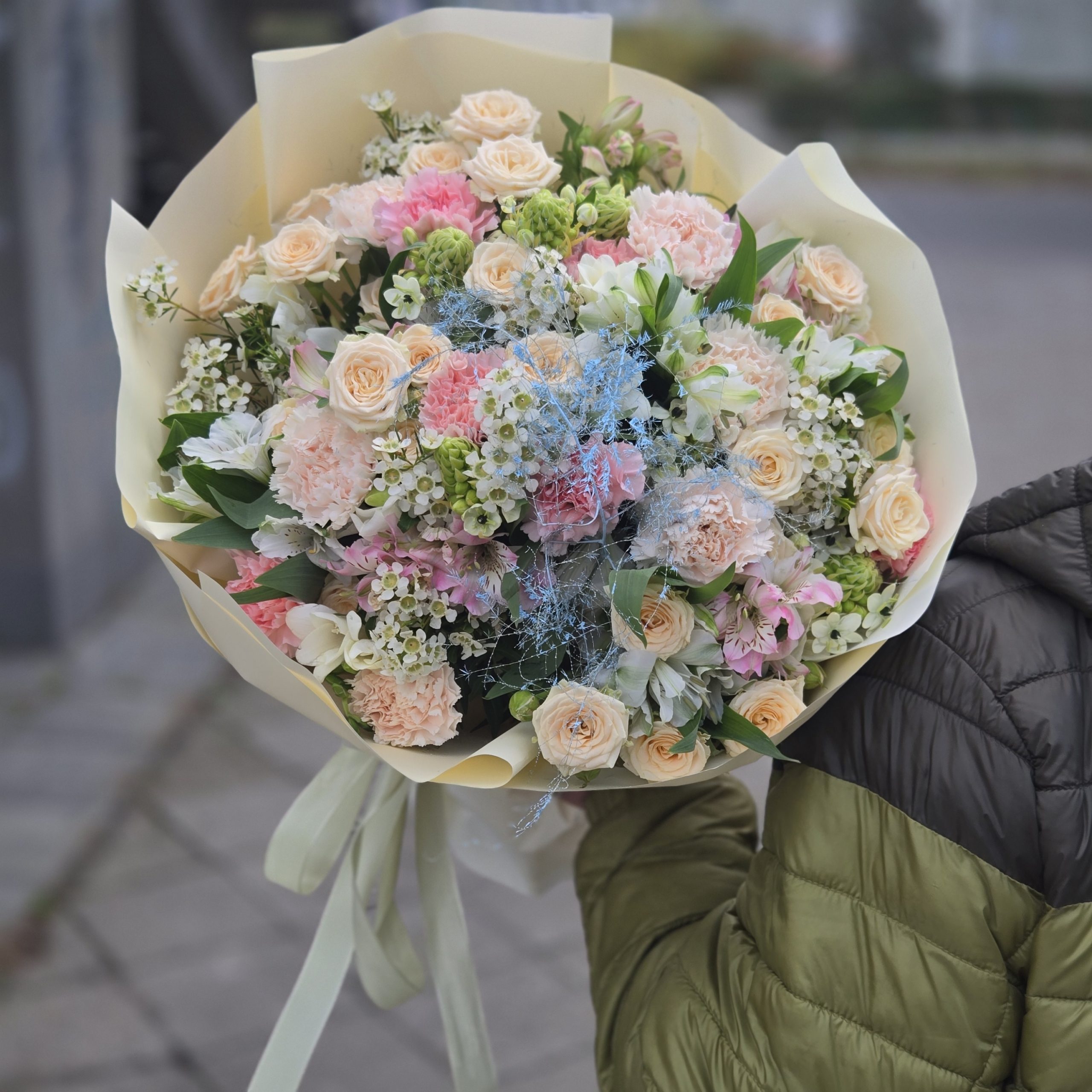 „Bukiet Kremowy” to autorska kompozycja stworzona przez Kwiatowe Królestwo — kwiatowy wyraz subtelnej elegancji i delikatnego luksusu. Idealny jako gest wdzięczności, wyraz uczucia lub towarzysz wyjątkowej okazji. Bukiet został skomponowany z myślą o tych, którzy szukają czegoś więcej niż tylko bukiet – poszukują kwiatów, które przemówią swoim kolorem i formą.