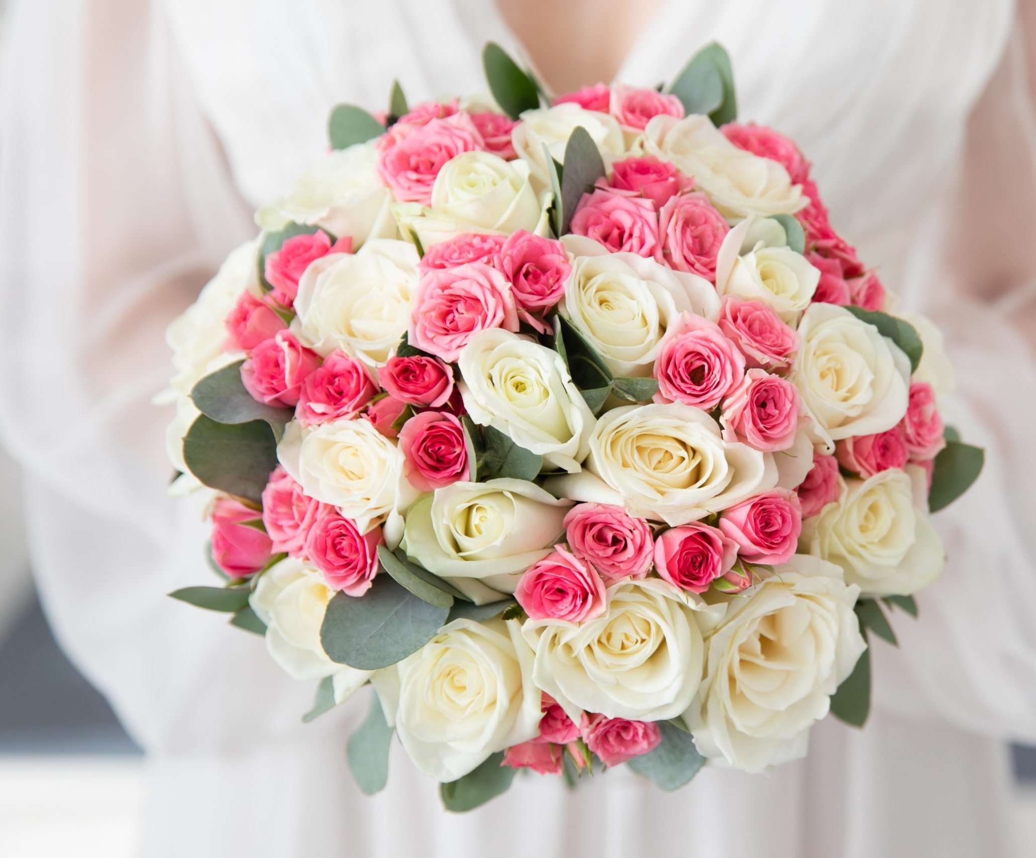 Skład bukietu: róża, róża gałązkowa, eukaliptus
