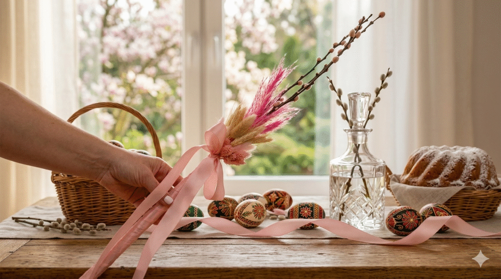 Ręcznie wykonana palma z suszonych traw i polnych kwiatów. Połączenie tradycyjnych bazi z romantycznym różem nadaje jej lekkości i sprawia, że będzie wyjątkową ozdobą wielkanocnego stołu.3. Ekspresowa Dostawa: Jako kwiaciarnia z wysyłką kwiatów w Warszawie, zapewniamy szybką i niezawodną dostawę, dzięki której Twoje życzenia dotrą do odbiorcy na czas, nawet w przypadku nagłych okoliczności.