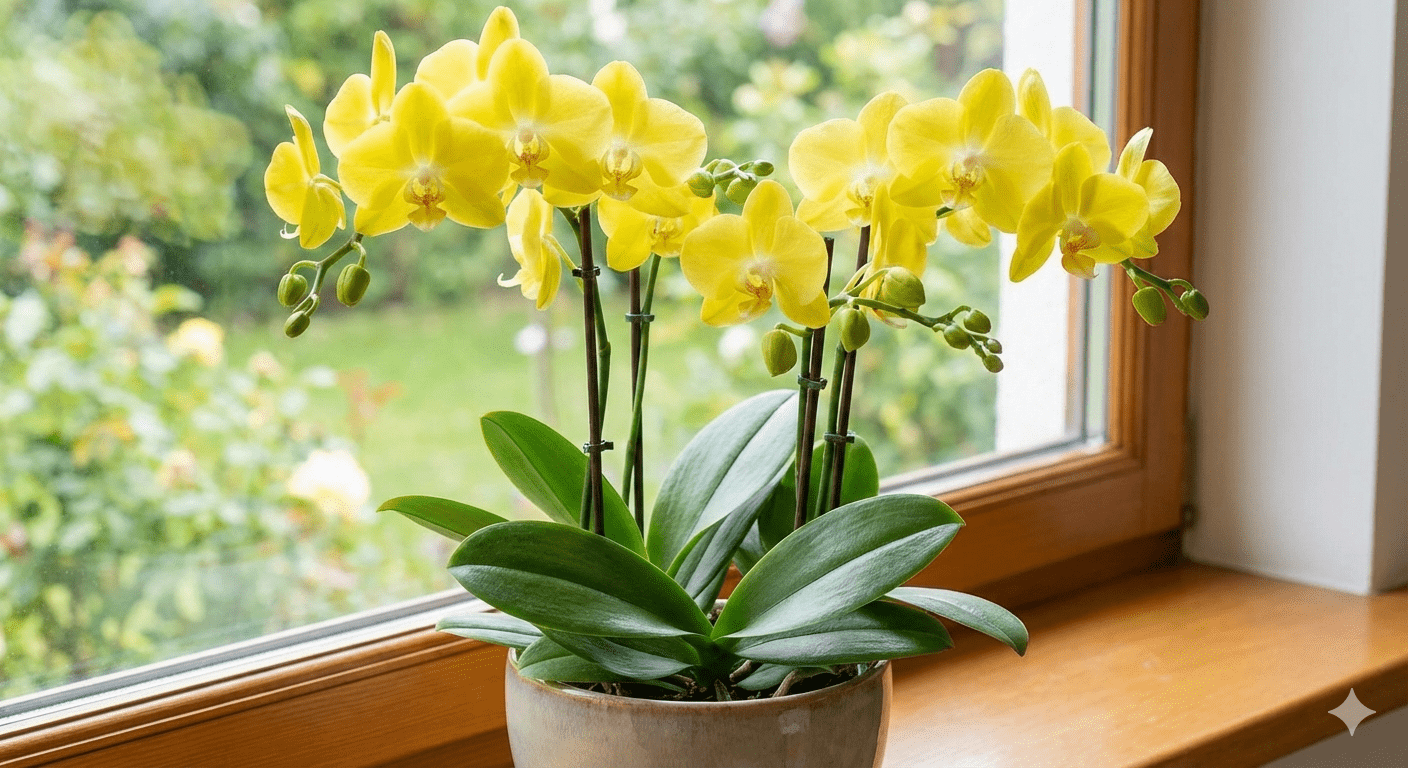 Żółty storczyk dwupędowy to wyjątkowo elegancka roślina doniczkowa. Dwa obsypane kwiatami pędy nadają kompozycji okazały, harmonijny wygląd, dzięki czemu storczyk prezentuje się niezwykle efektownie zarówno we wnętrzach domowych, jak i biurowych. 🌸 Co otrzymujesz- Storczyk o 2 pędach z żóltymi kwiatami – dzięki dwóm pędom kompozycja wygląda bogato i efektownie.